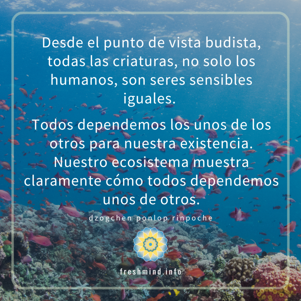 Desde el punto de vista budista, todas las criaturas, no solo los humanos, son seres sensibles iguales. Todos dependemos los unos de los otros para nuestra existencia. Nuestro ecosistema muestra claramente cómo todos dependemos unos de otros.