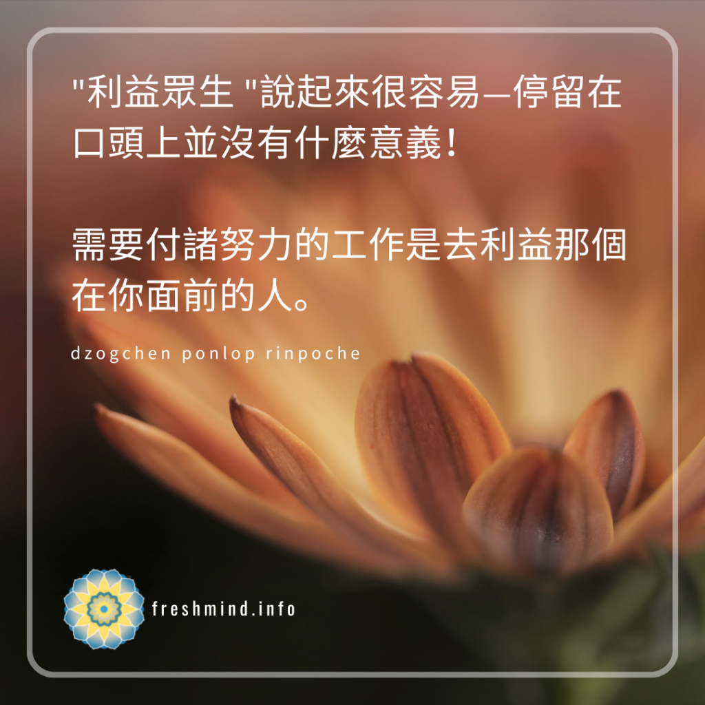 “利益眾生 “說起來很容易—停留在口頭上並沒有什麼意義! 需要付諸努力的工作是去利益那個在你面前的人。