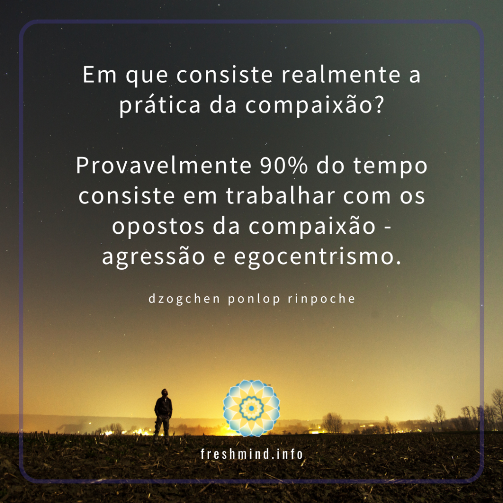 Em que consiste realmente a prática da compaixão? Provavelmente 90% do tempo consiste em trabalhar com os opostos da compaixão – agressão e egocentrismo