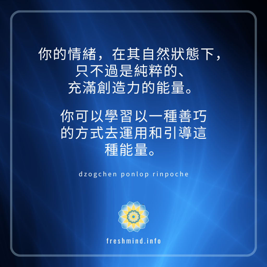 你的情緒,在其自然狀態下,只不過是純粹的、充滿創造力的能量。你可以學習以一種善巧的方式去運用和引導這種能量。